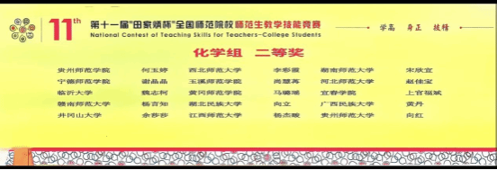 2025年11月28日至30日,第十一届“田家炳杯”全国师范院校师范生教学技能竞赛在浙江师范大学圆满落幕。化学与环境工程学院曾艳萍、李琛、吴云英、鲁广秋老师指导的22级化学(师范)专业尚慧苒和丁治磊同学,代表学校分别参加高中化学组和初中科学(化学)组的比赛。尚慧苒同学作为云南省化学学科唯一入选决赛的选手,凭借深厚的专业素养与亮眼的教学风采,成功斩获二等奖,丁治磊同学获得三等奖的优秀成绩。