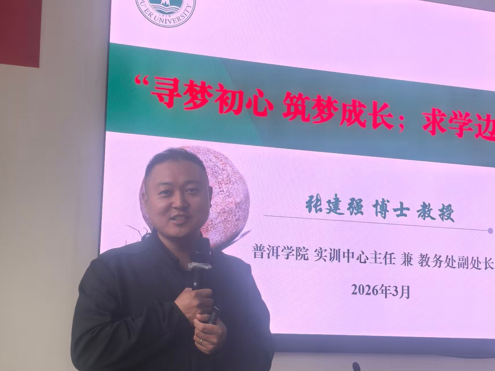 在杰出校友经验分享环节中,普洱学院教务处副处长张建强教授作为杰出校友代表,围绕自身求学和工作经历,以“寻梦初心,筑梦成长;求学边疆,不负韶华”为主题的激情演讲,充分点燃了学生的考研梦想。