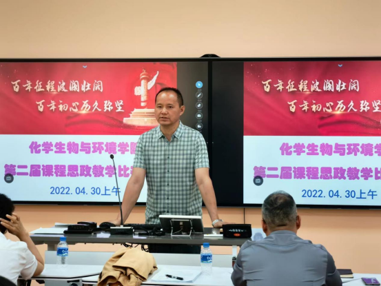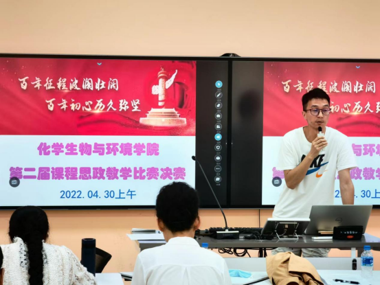 2022年4月30日上午,化学生物与环境学院于在学校智慧教室举办了第二届课程思政教学比赛决赛。除参赛选手和评委以外,学院全体教师参与观摩了此次比赛。