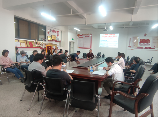 为全面深入学习贯彻落实党的二十大精神和《新时代高校教师职业行为十项准则》的要求,全面提升教师思想政治素质和职业道德修养,2023年4月17日下午,化学生物与环境学院在实训楼B-609会议室召开2023年春季学期师德师风集中教育活动,全院教师参加会议。