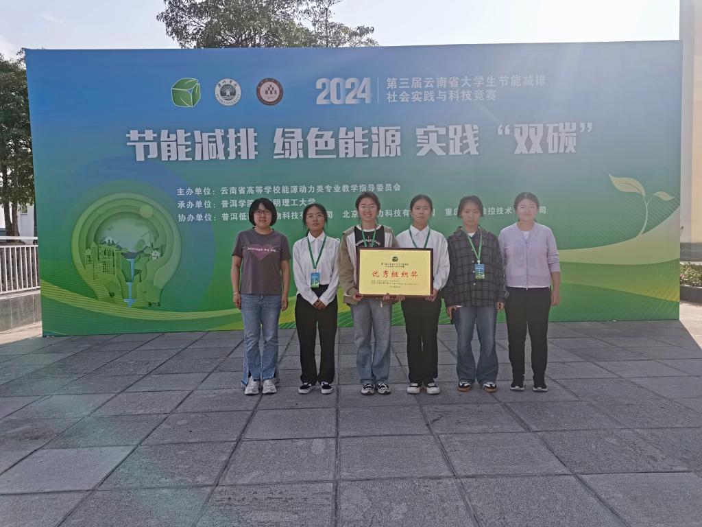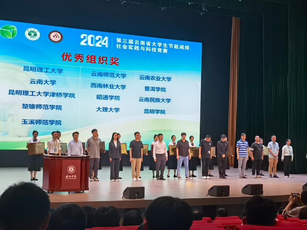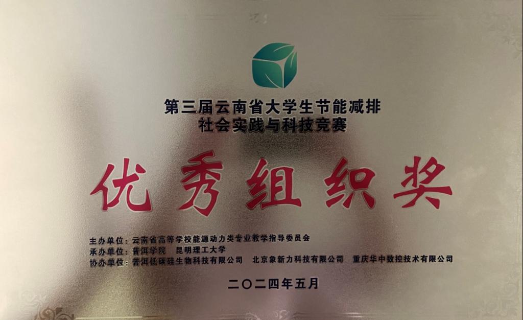 化学生物与环境学院在此次竞赛中组织有力,成效显著,获“优秀组织奖”荣誉。本次大赛紧扣“节能减排、绿色能源、实践双碳”竞赛主题,响应国家“碳达峰”“碳中和”战略目标,贯彻落实云南省教育高质量发展三年行动计划,增强全省高校学生节能减排意识、科技创新意识和团队协作意识,提高学生创新能力、工程实践能力和社会调查能力,加快创新型人才的培养,为我省绿色能源发展贡献力量。