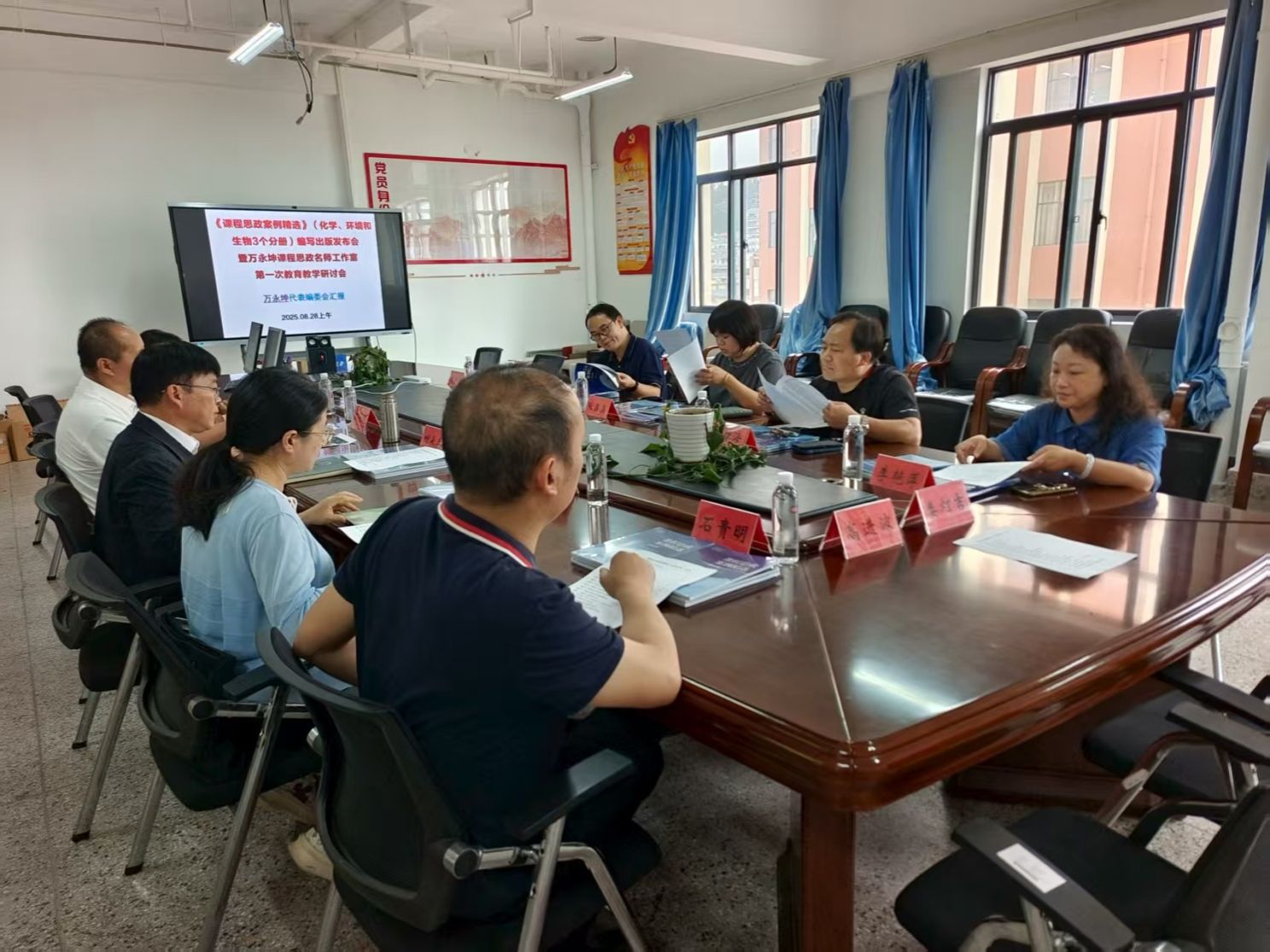 2025年8月28日上午,《课程思政案例精选》(化学、环境和生物3个分册)编写出版发布会暨万永坤课程思政名师工作室第一次教育教学研讨会在我校实训大楼B-609会议室召开。会议由化学与环境工程学院教学副院长吴云英主持,编委会成员、化学与环境工程学院和农学与生物科学及职能部门代表共10余人参会,聚焦教材特色展示与课程思政教学实践路径展开深入研讨。