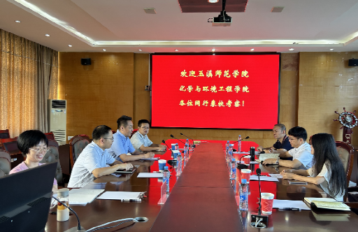 9月25日,玉溪师范学院化学与环境工程学院院长叶长兵、副院长朱艺、专业负责人石贵明和研究生秘书牟燕一行到访江西科技师范大学,就化学、应用化学学科建设和研究生培养工作开展考察交流活动。江西科技师范大学化学化工学院党委书记申亮、副院长高飞和相关负责人热情接待,双方共同召开交流会议。
