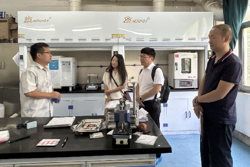 随后,江西科技师范大学化学化工学院研究生导师陈山虎带领考察组参观学院实验室,详细介绍了实验室的功能布局、仪器设备配置及在研究生科研实践中的应用情况。此次交流活动对提升我院学科建设与研究生培养质量具有重要意义。