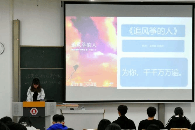 首先,主持人以书籍名言引入活动主题,参赛同学依次介绍了自己喜欢的书籍并分享了自己的读书心得。通过PPT、视频与书籍讲解的方式带领同学们走进书籍的世界,体会书中主人翁的百味人生,学习书中的人生哲理。