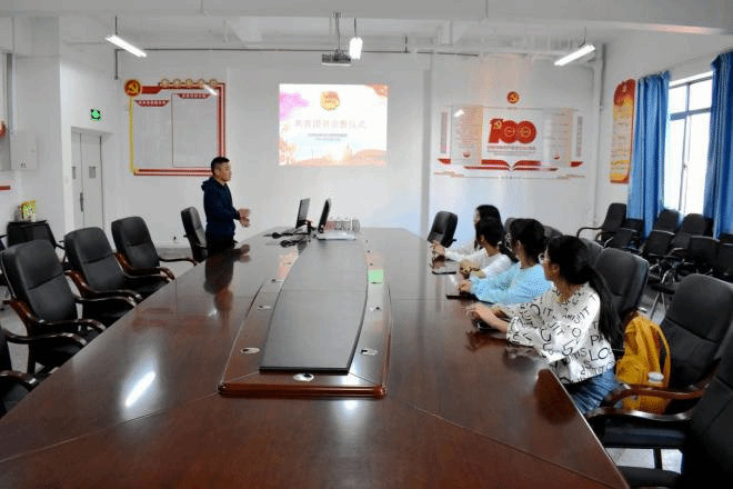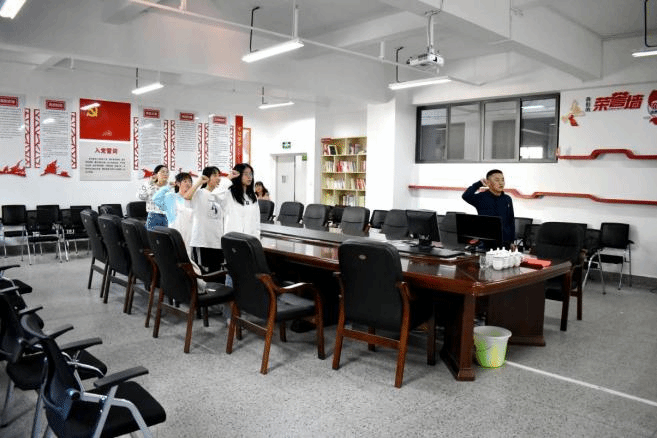 首先,由团员代表为新团员佩戴团徽。随后,学院团委书记刘桥刚老师带领新团员回顾中国共产主义青年团的性质以及成为团员的意义所在。最后,在刘桥刚老师的带领下,新团员进行了入团宣誓。