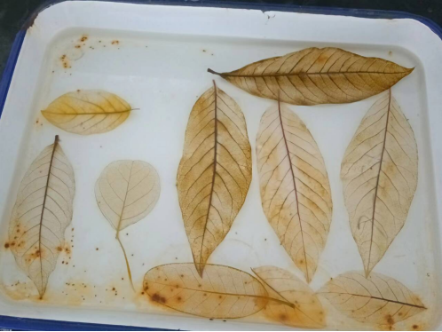 5月8日在实训大楼B1004开展了“叶脉书签制作”活动。活动负责人讲解了叶脉书签的制作方法及相关安全措施,带领同学们配制相关试剂试剂和相关材料。同学们严格按照流程开展制作叶脉书签:煮沸、刷去叶肉、漂白……。不一会,一张张漂亮的书签便展示在大家面前,看到自己的作品,大家脸上都露出了喜悦的笑容。