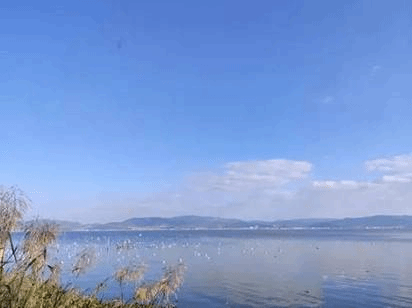 杞麓湖位于通海县城北,今天的天气是多云,灰白色的天空衬托的杞麓湖更加辽阔,清风拂面偶尔几只水鸟从水面掠过,湖边绿植茂盛,沿途的柳树柳枝微垂别有一番风味,一些地方遍布着湿地,湿地植被争相斗艳摇曳风中。
