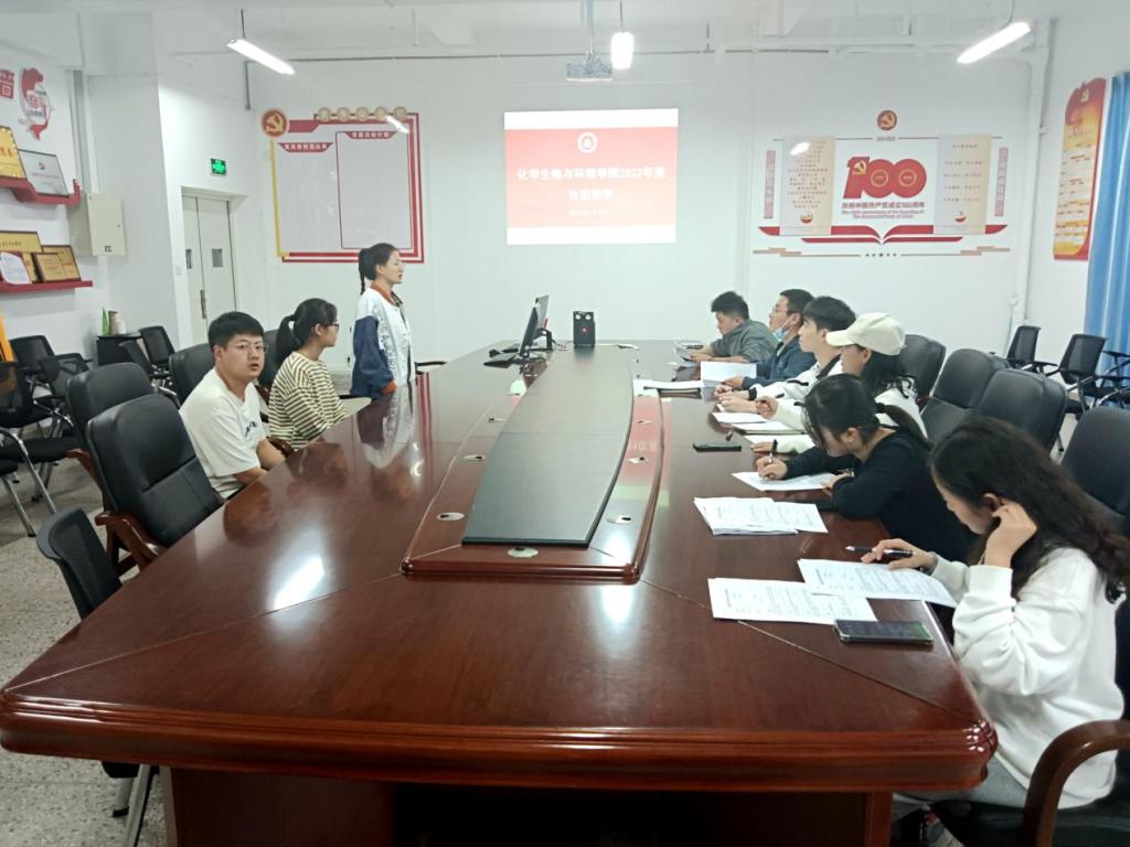 为推进学院社团建设与管理的规范化,发挥好社团在拓展学生素质、培养学生成长成才等方面的积极作用。化学生物与环境学院于2022年10月30日在实训大楼B609开展了2022年度社团初审工作。团委书记刘桥刚老师,团委学生会负责人、学院各社团负责人参加了此次初审会。