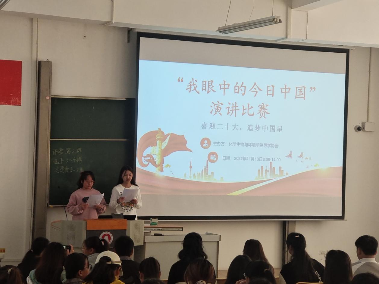 为了庆祝二十大的召开,弘扬爱国精神,同时激发同学们的爱国热情,丰富课余生活,化学生物与环境学院导学协会于2022年11月13日在14教105开展“我眼中的今日中国”演讲比赛。