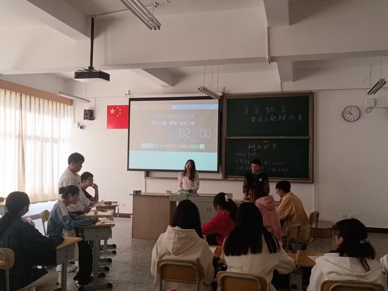 以辩促学,锲而不舍,方能胜人胜己,以辩会友,博采众长,终可成人成才。为了学习贯彻党的二十大精神,弘扬爱国主义精神,同时丰富同学们的课余生活,提高同学们的思辩能力,导学协会于2022年11月27日在13教307开展“喜迎二十大,追梦中国星”爱国主题辩论赛。