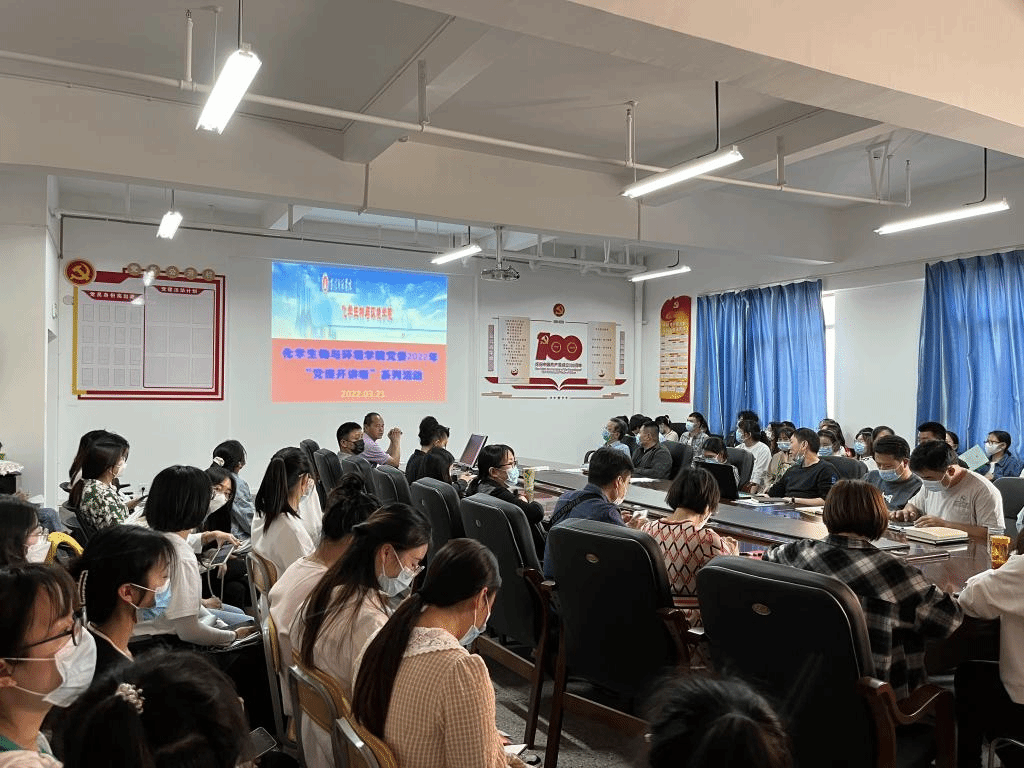 2022年3月21日下午,化学生物与环境学院党委在实训大楼B-609党员活动室召开了2022年“党课开讲啦”系列活动暨党史学习教育总结会,学院全体教师和学生党员同志参加了会议,会议由学院党委书记万永坤同志主持(讲)。