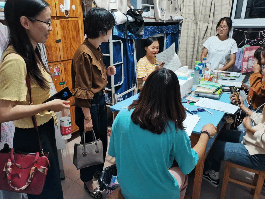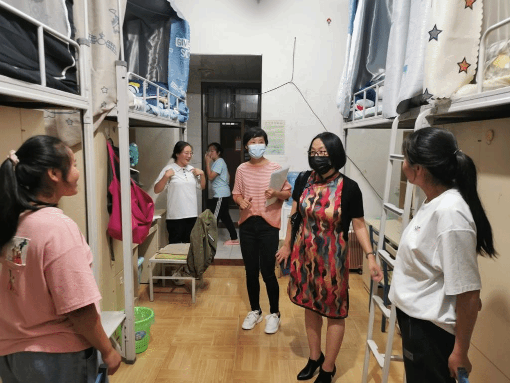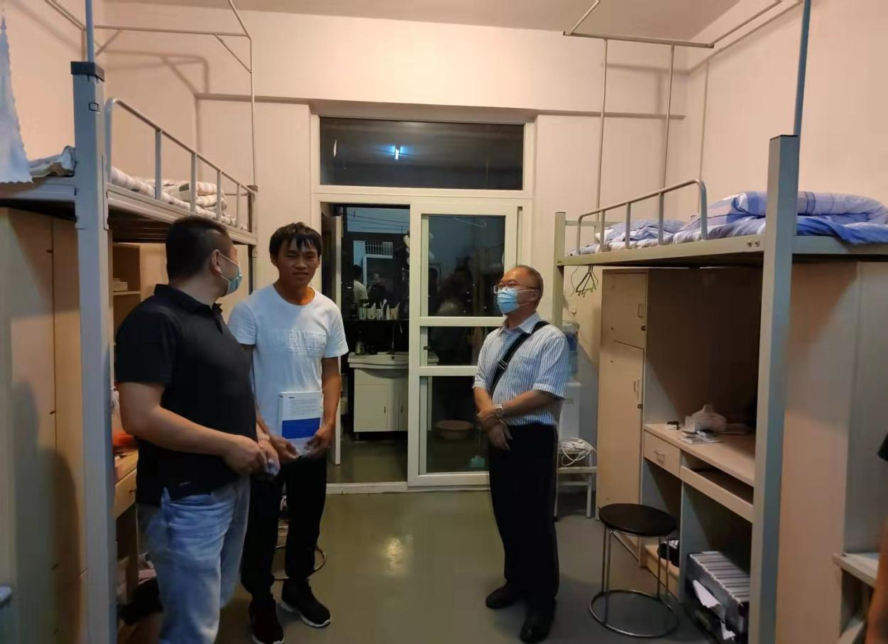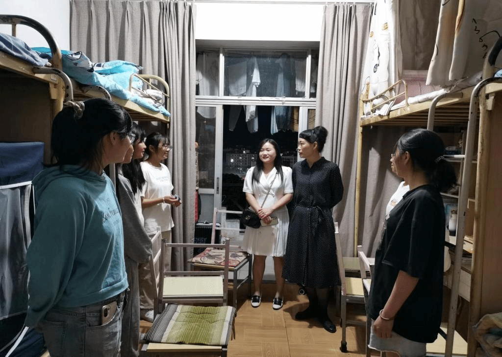 2021年9月17日晚上,化学生物与环境学院党政领导、辅导员、新生班主任一起走访新生寝室,看望新生、传达关爱。此次走访宿舍分为5组,分别由书记万永坤、院长李红梅、副书记赵静、副院长周元清和叶长兵带队,对学院新生所住的龙马公寓、B幢和7幢学生进行了走访。