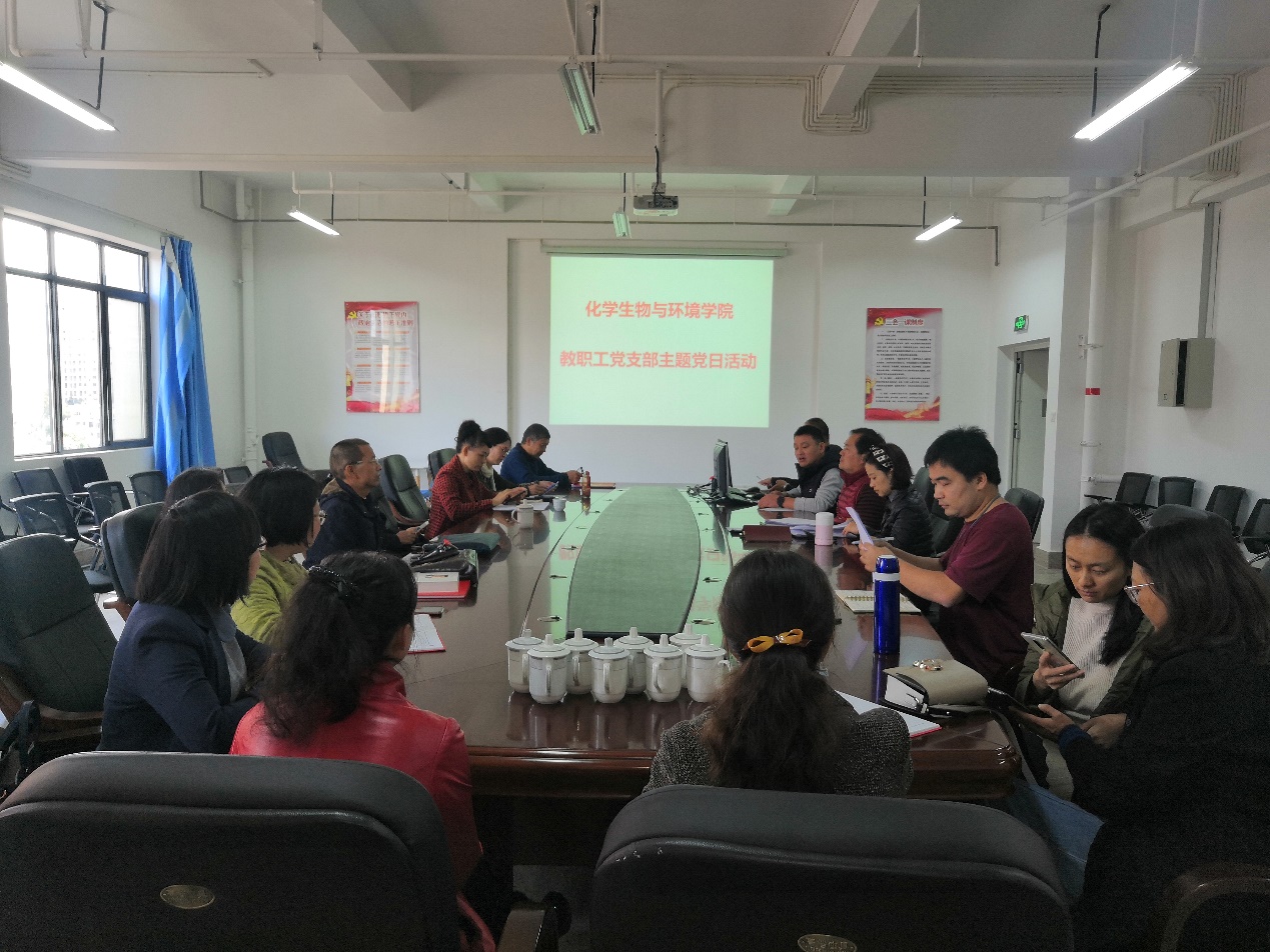 2020年11月17日上午,化学生物与环境学院党委书记万永坤同志在实训大楼B-603受邀为教职工党支部全体党员讲授党课,集中学习领会习近平总书记近年来所推崇的各种伟大奋斗精神。