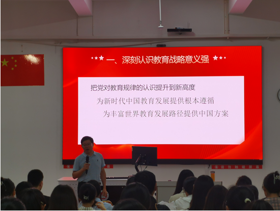 在党课上,章新副校长从“深刻认识教育战略意义”“深刻把握思想精髓”“云南教育怎么做”以及“玉溪师范学院怎么做”、四个方面展开阐述,既有高度——阐明了习近平总书记对我国教育的重要论述,又接地气——讲清楚了云南(玉溪)教育现状、我校“十四五”发展规划,学生党员们反响专注热烈。