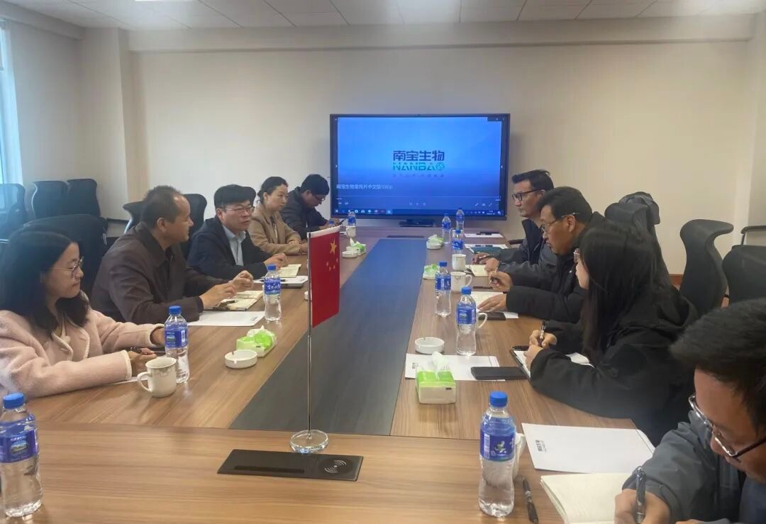2025年11月7日,玉溪师范学院化学与环境工程学院院长叶长兵、党委书记万永坤、副院长朱艺、办公室主任刘琴、专业负责人胡栋宝、科研秘书杨帆一行赴南宝生物公司开展考察交流。南宝生物公司总经理刘科新、技术总监蒋其军、副总经理普亮及在该公司工作的我校校友公孙江明、田玉娜热情接待并参与会谈。