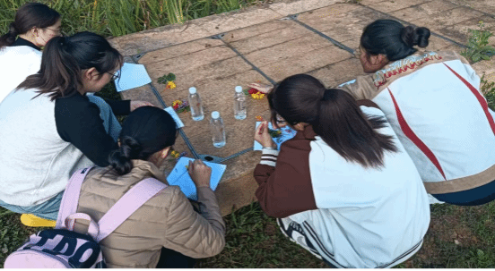 活动期间,同学们发挥想象力和动手能力,将花草树木拓印在手帕上,制作出各具特色的精美手帕,每张手帕都承载着对自然与生活的独特理解。本次活动旨在让同学们学习植物拓印技艺,培养实践能力与创造力,丰富课外生活,感受传统文化魅力,同时引导大家发现自然之美,增强保护自然的意识,让参与者在体验乐趣中收获成长。