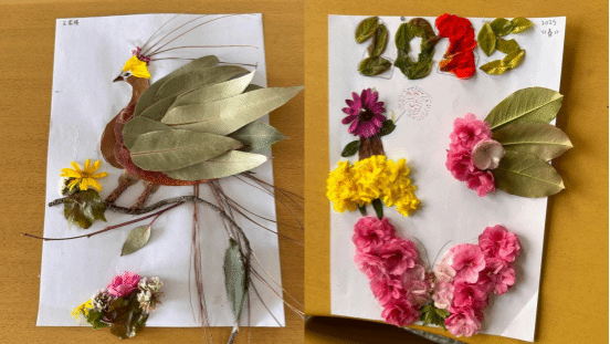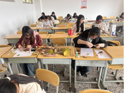 上午9点,社团成员为同学们仔细讲解了植物特性、采集要点和标本画的制作步骤。随后,同学们开始在校园内采集植物,精心挑选叶片、花瓣等素材,并在活动教室完成创作,创作出了专业、精美的作品:有的拼出爱心表达对自然的热爱,有的用树叶勾勒校园建筑,还有的创作动物主题标本画,栩栩如生,一幅幅精美的标本画诞生。