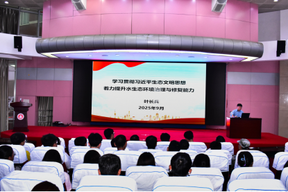 叶长兵院长用“地球体温计”作喻,指出生态文明是继工业文明之后的新文明形态,核心是人——自然——社会共生共赢;面对资源红线、气候突变、生态负债三重警报,青年若缺席,美丽中国便缺环,号召同学们“把环保写进专业、把低碳变成技能”。