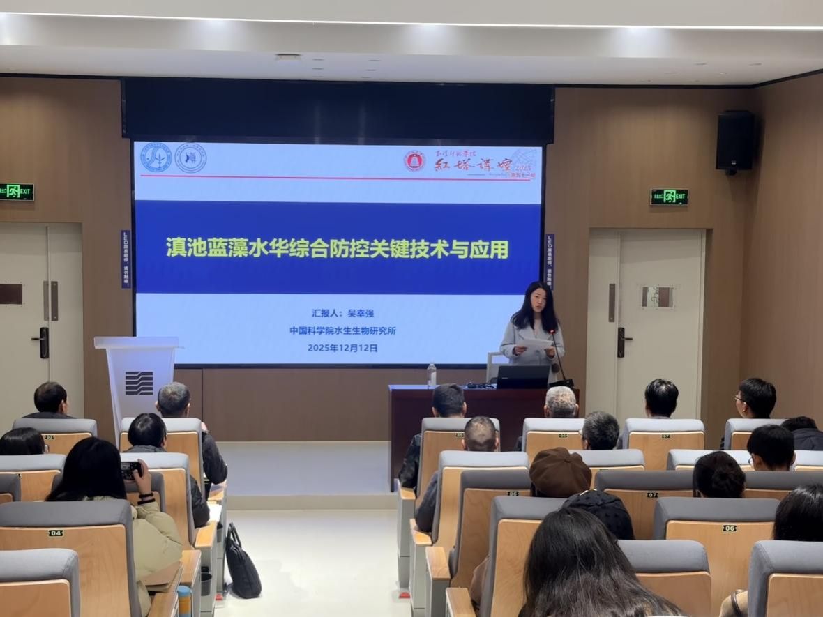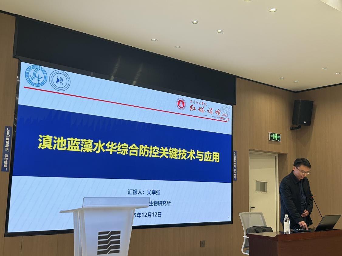 讲座中,吴幸强研究员围绕滇池生态保护核心议题,从六个维度展开系统阐释:深入剖析滇池藻华发生特征及藻类群落演替规律,揭秘蓝藻优势种群维持的关键生态机制,解析蓝藻水华垂直迁移的环境驱动因素,分享基于多源数据的蓝藻水华预测预警技术体系,详解应急处置中的物理、化学与生物协同调控技术,提出长效防控方案。整场讲座内容翔实、数据严谨,既有前沿理论支撑,又有丰富实践案例,为在场听众呈现了蓝藻水华防控领域的技术全景。
