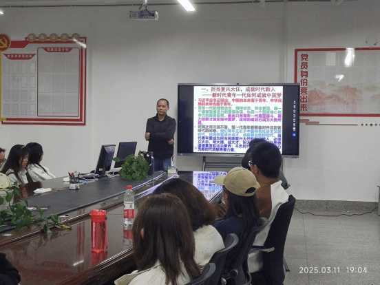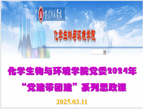 点亮新学期,开启新征程。2025年3月11日晚19:00,化学生物与环境学院在实训大楼B-609开展“学风引领 筑梦未来”党建带团建开学思政第一课活动。此次活动由学院党委万永坤书记主讲、团委书记刘淑娟老师主持,全体团学成员积极参与。